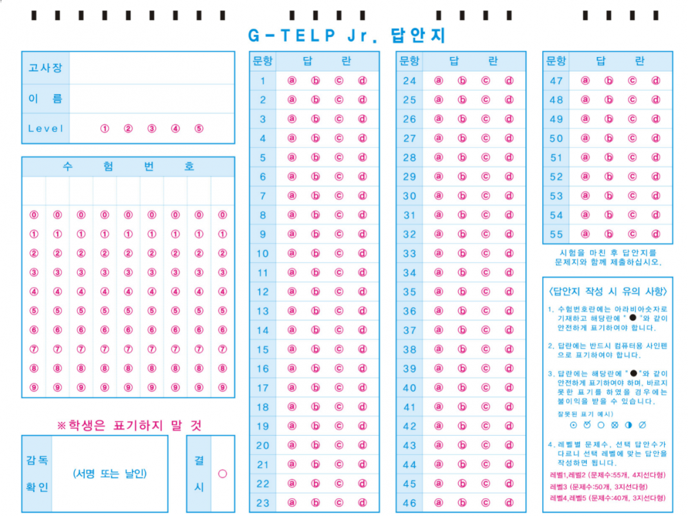 지텔프 주니어 모의고사 OMR 카드 양식 파일 공유 드립니다.